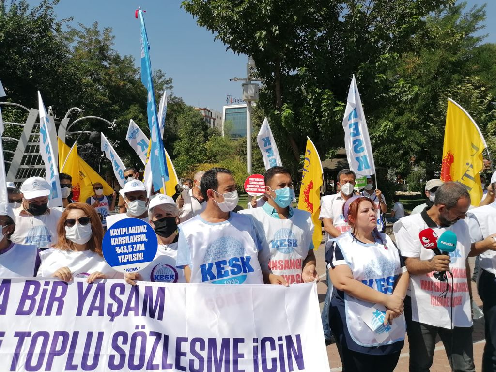 KESK submitted its file to the Ministry of Labour in time. Our leaders attended the first round of the CBA negotiations and publicly expressed our demands. Not surprisingly the Ministry of Labour offered an extremely low increase (offers 5% and 6% increase in wage and the inflation rate balance for the 1st and 2nd Quarters respectively in 2022. It offers %6+6% increase and the inflation rate balance in 2023. It is unacceptable for KESK.) that focuses on economic rights only. Given its unbalanced structure and not being an inclusive CBA, KESK will have not enough space to express its criticisms and concerns about the offer through the negotiations. The current structure authorizes only 1 confederation, which holds the majority in this case MemurSen, to represent public employees in these meetings.